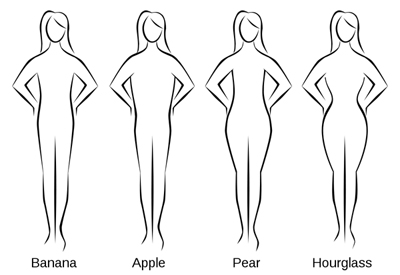 To illustrate I have drawn the proportions on two different body types to the left in the figure. As you can see, the lady to the left will look good in a tapered shirt that crops at the waist. However, her outfit will not necessarily benefit from a belt at the slimmest point at the waist as the distance to mid bust will be too short.