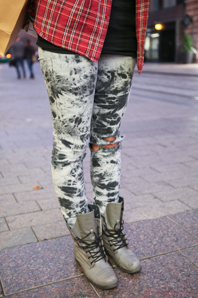 – for the non-punk part of your outfit, wear some cute or “softening” clothes (as Elisabeth is doing here with the plain top and the square check flannel shirt).