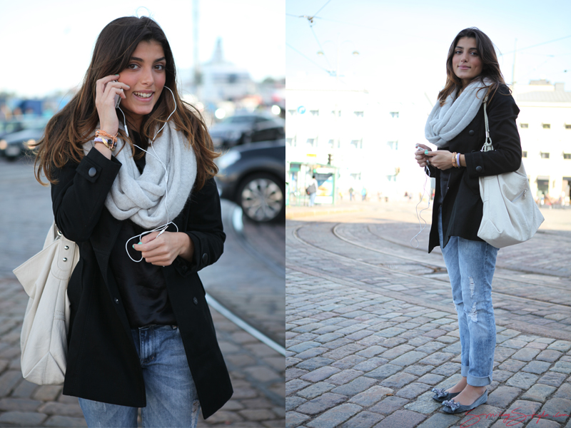 What an everyday supermodel!! And I don’t mean only her looks, but really her personality, and the way she accommodated my request to take her picture. I got so many great pics, and actually fell in love with the sailor jacket, and the scarf. This is also a good example of having a fairly conservative outfit without too much going on, but then completing the look with some small details such as the bracelets and the funky nail polish. I also wonder where I could find one of those “round” scarves… I tried with a normal one, but it didn’t work out that well. But maybe you can make it work better 🙂 For some good tips on how to wear all those scarves, search for “scarf tutorial” or “25 ways to wear a scarf” on youtube.